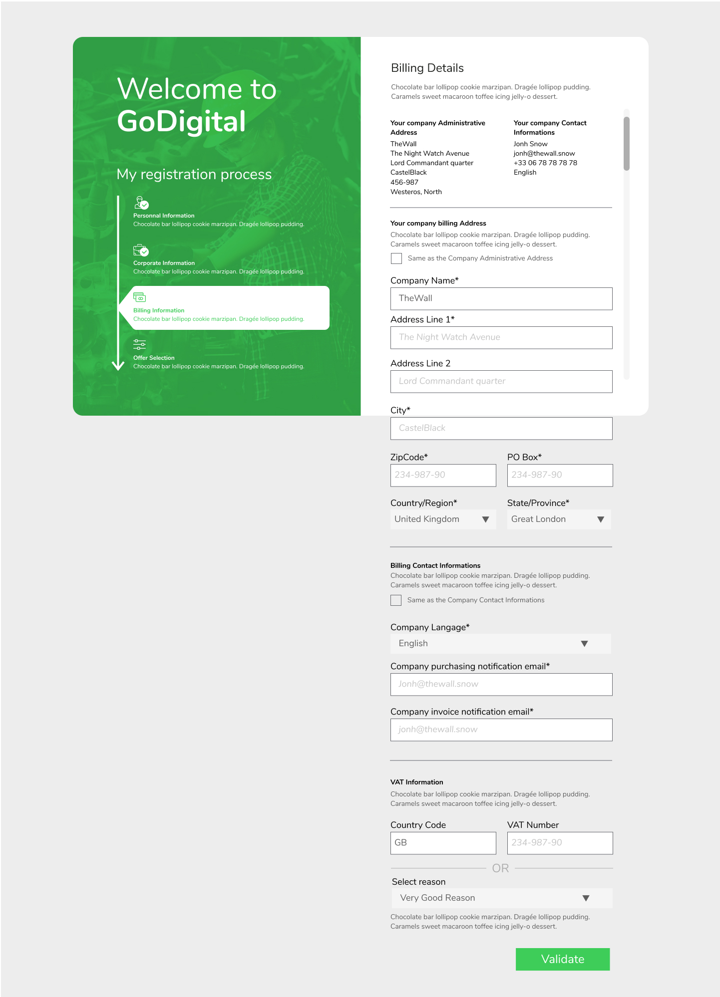 Refonte UX et UI du parcours d'inscription B2B de la plateforme e-commerce de services numériques GoDigital pour créer une expérience d'achat fluide.